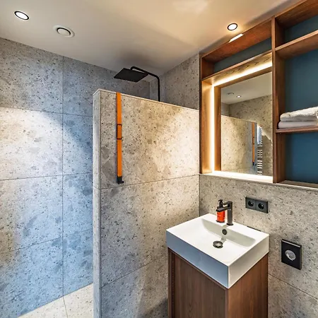 Work And Stay Apartment Balcony is equipped with a bathroom that features a hairdryer. Additionally, you'll find a separate toilet and a washing machine.